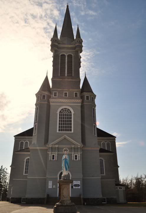 Just posting a few random points of Interest, there are some beautiful Churches in the area while driving to see these Lights. The first one you will come to is a big and beautiful stone one called L'Eglise St-Bernard.The next you will see is Saint Mary's Church.... it is North America's Tallest Wooden Church with a Steeple that reaches 56 meteres high. Not only is it amazing for that major fact, but it's a pretty nice looking church also. This Church is located next to the Université Sainte-Anne campus.